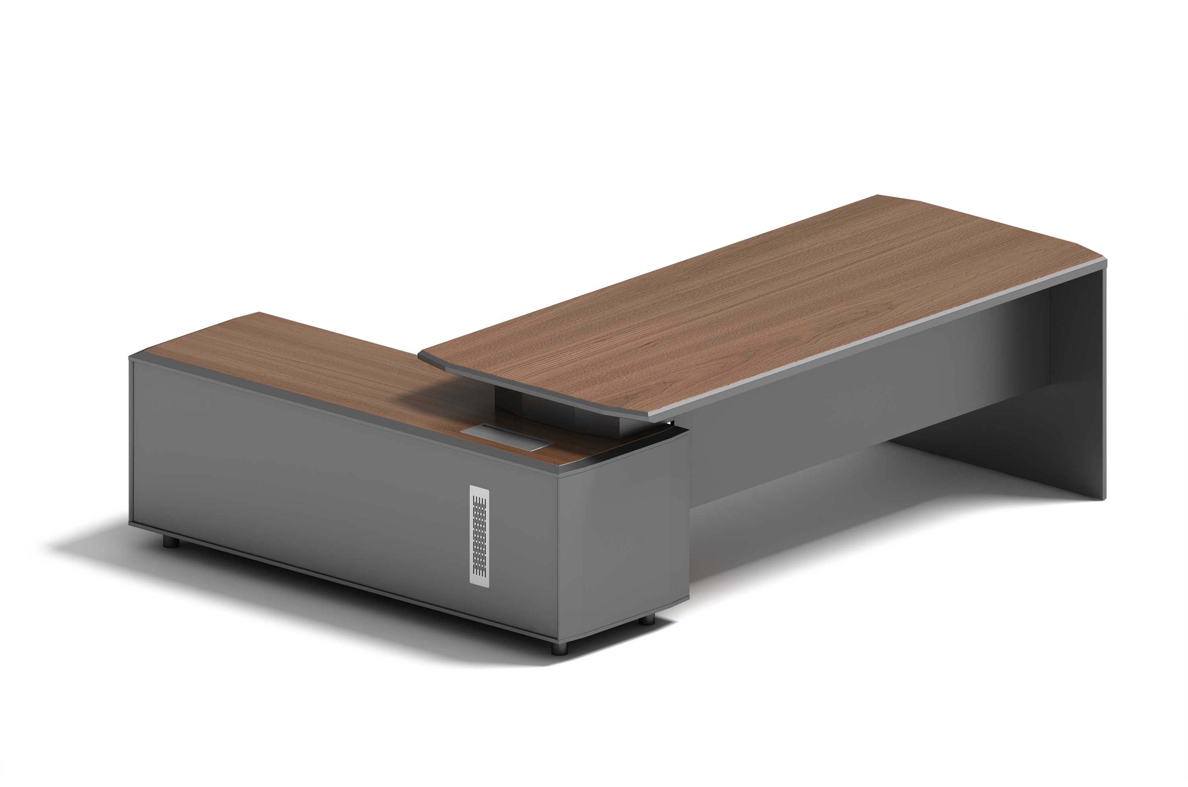 1.工艺:见光面采用E0级中密度纤维板+0.6mm天然木皮做水性漆/实色水性漆,非见光面采用E0级刨花板贴三聚氰胺饰面 2.封边:见光面天然木皮封边/实色水性漆,非见光面采用优质PVC封边 3.配件:“BMB”牌 缓冲门铰+主机散热盖+优质ABS圆柱形调节脚; 4.走线:副柜内部走线,配∅80圆形过线盒+OP过线盖; 5.班台分左右;