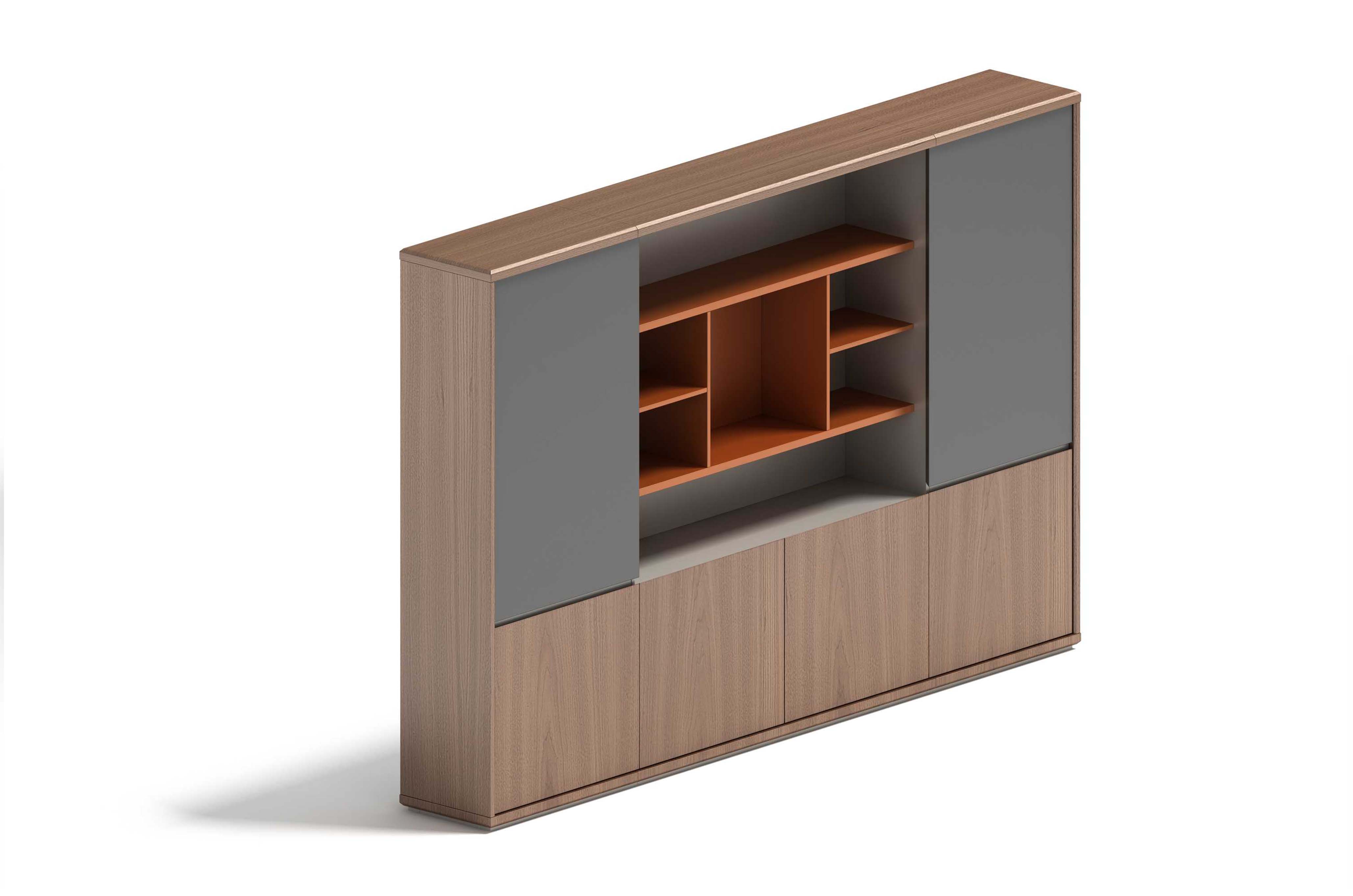 1.工艺:见光面采用E0级中密度纤维板+0.6mm天然木皮做水性漆/实色水性漆,非见光面采用E0级刨花板贴三聚氰胺饰面 2.封边:见光面天然木皮封边/实色水性漆,非见光面采用优质PVC封边 3.配件:“BMB”牌 缓冲门铰;