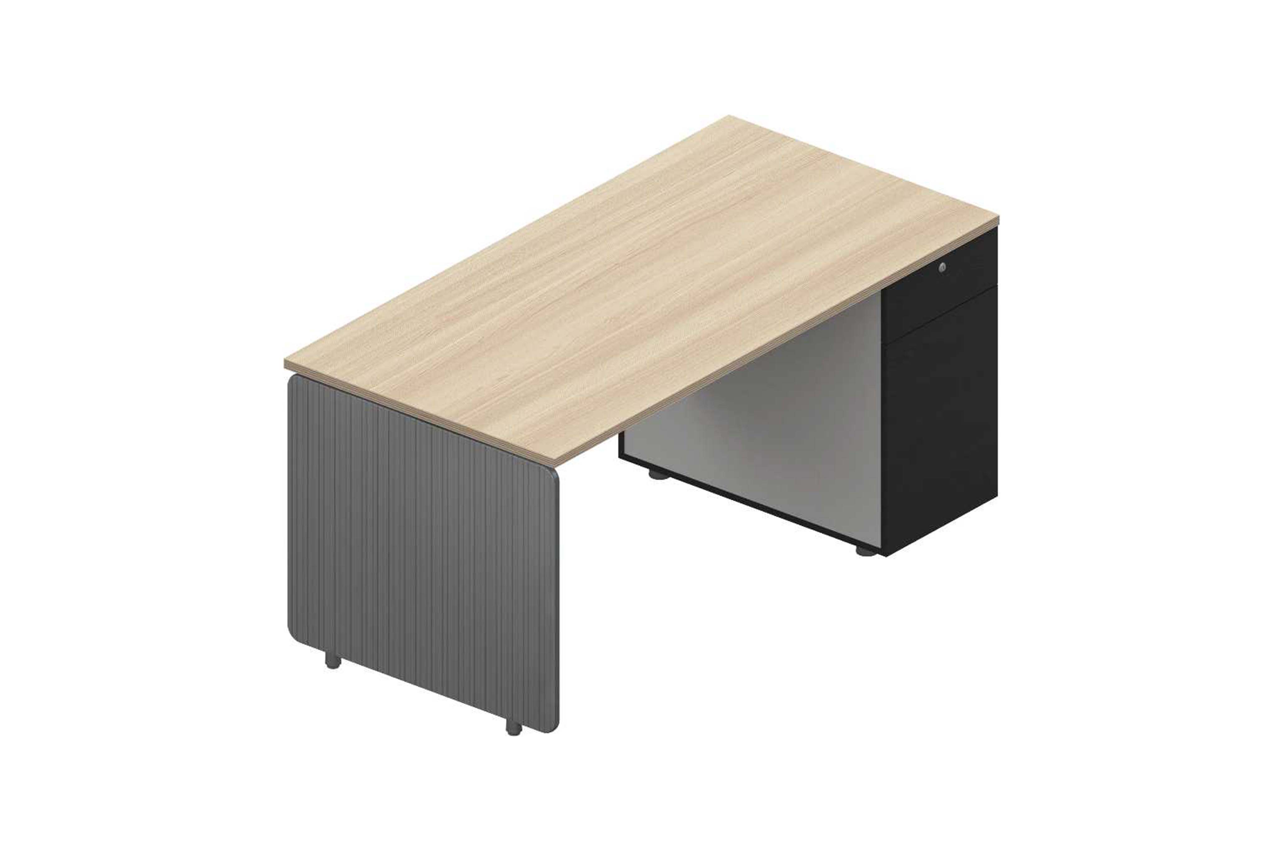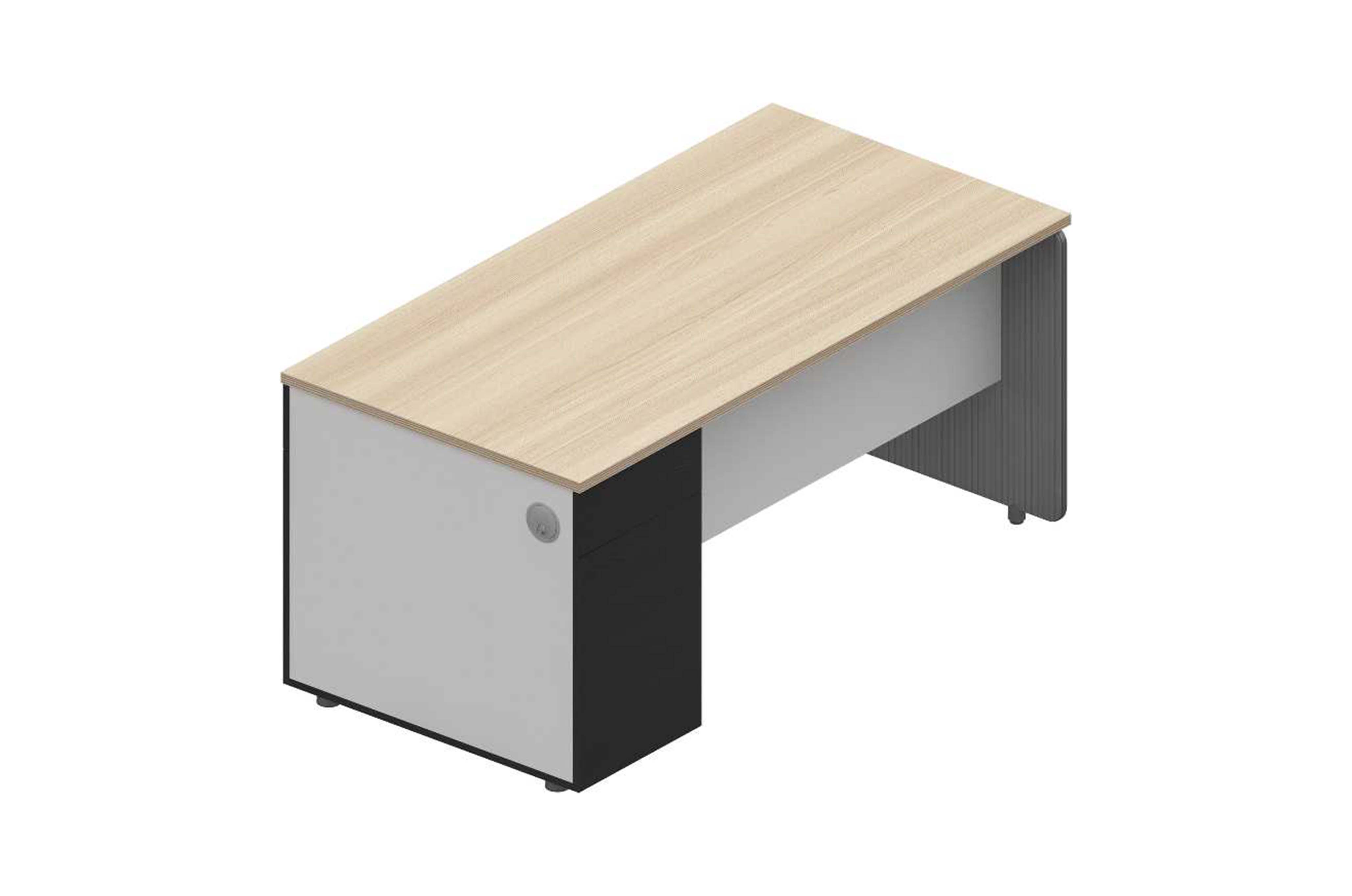 1.工艺:采用E0级刨花板贴三聚氰胺饰面 2.封边:采用优质PVC封边 3.细节:灰色皮纹侧脚; 4.配件:“BMB”牌阻尼门铰+“BMB”牌导轨+优质ABS圆柱形调节脚+椭圆形调节脚+∅80圆形过线盒+优质锁具; 5..班台分左右;