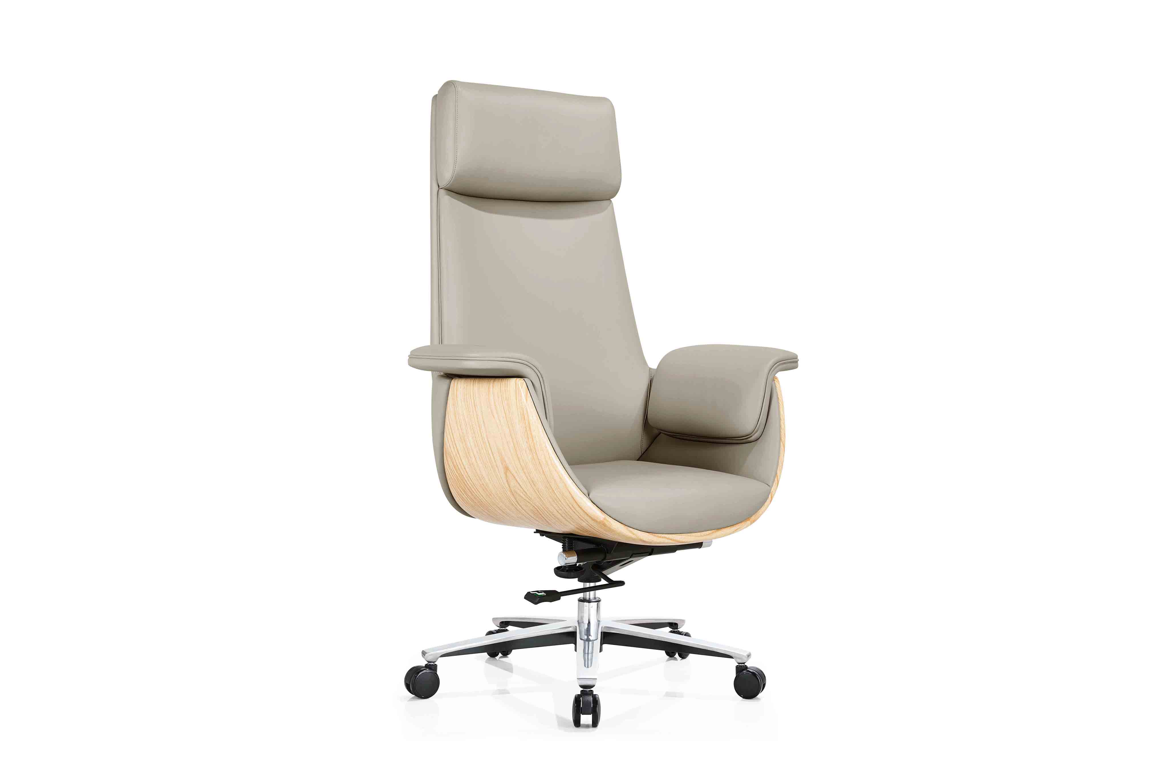 1.优质西皮/巴西进口优质黄牛皮饰面 2.9层木皮压制而成的高密度夹板 3.40密度高弹力海绵 4.中班飞机底盘 5.木纹皮扶手板面 6.通过SGS认证三级电镀气压棒 7.350#铝合金平脚配Ø60PU静音轮