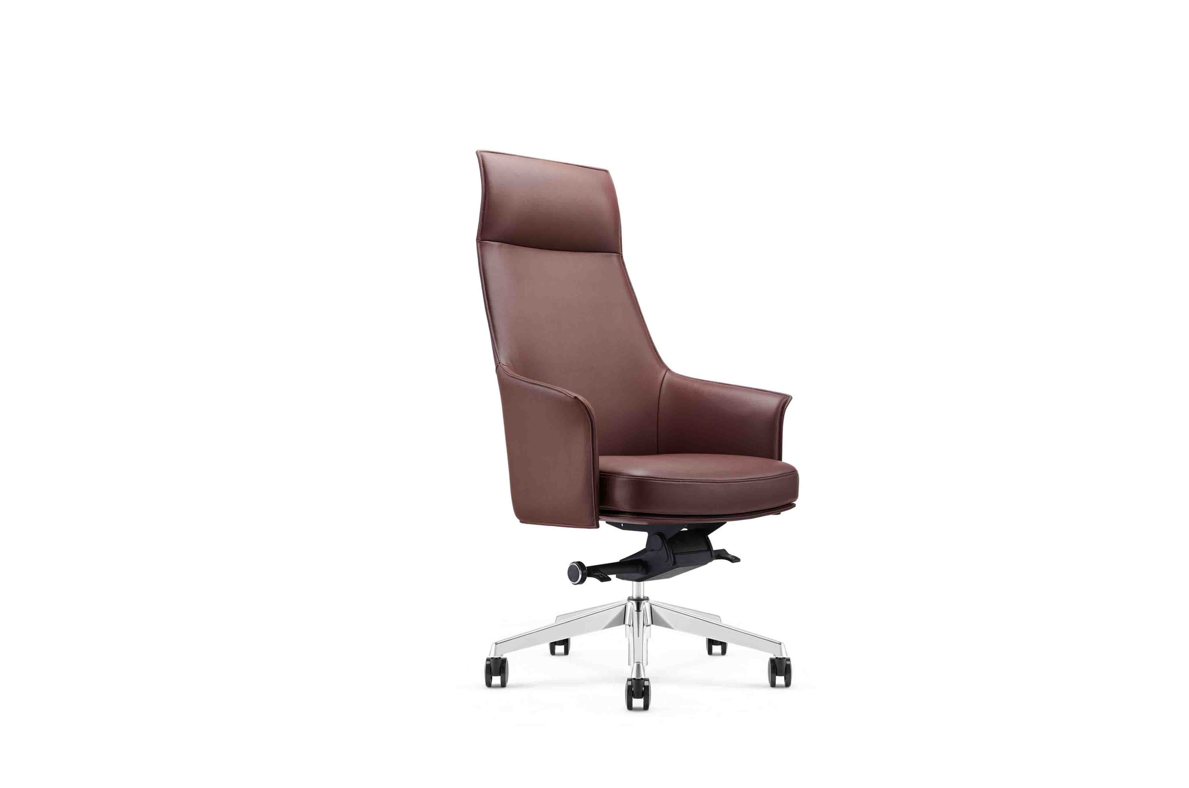 1.优质西皮/巴西进口优质黄牛皮饰面 2.9层木皮压制而成的高密度夹板 3.40密度高弹力海绵 4.中班飞机底盘 5.通过SGS认证三级电镀气压棒 6.350#电镀脚配Ø60PU静音轮