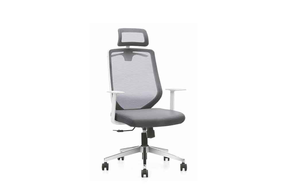 1.头枕可升降调节 2.头枕和背采用耐磨弹力网布 3.美标定型海绵座带坐壳,配三防座布 4.021固定PP扶手 5.分体倾仰原位锁定底盘 6.100mm行程黑色四级气杆 7.350mm高级电镀脚 8.60mm防震PU轮