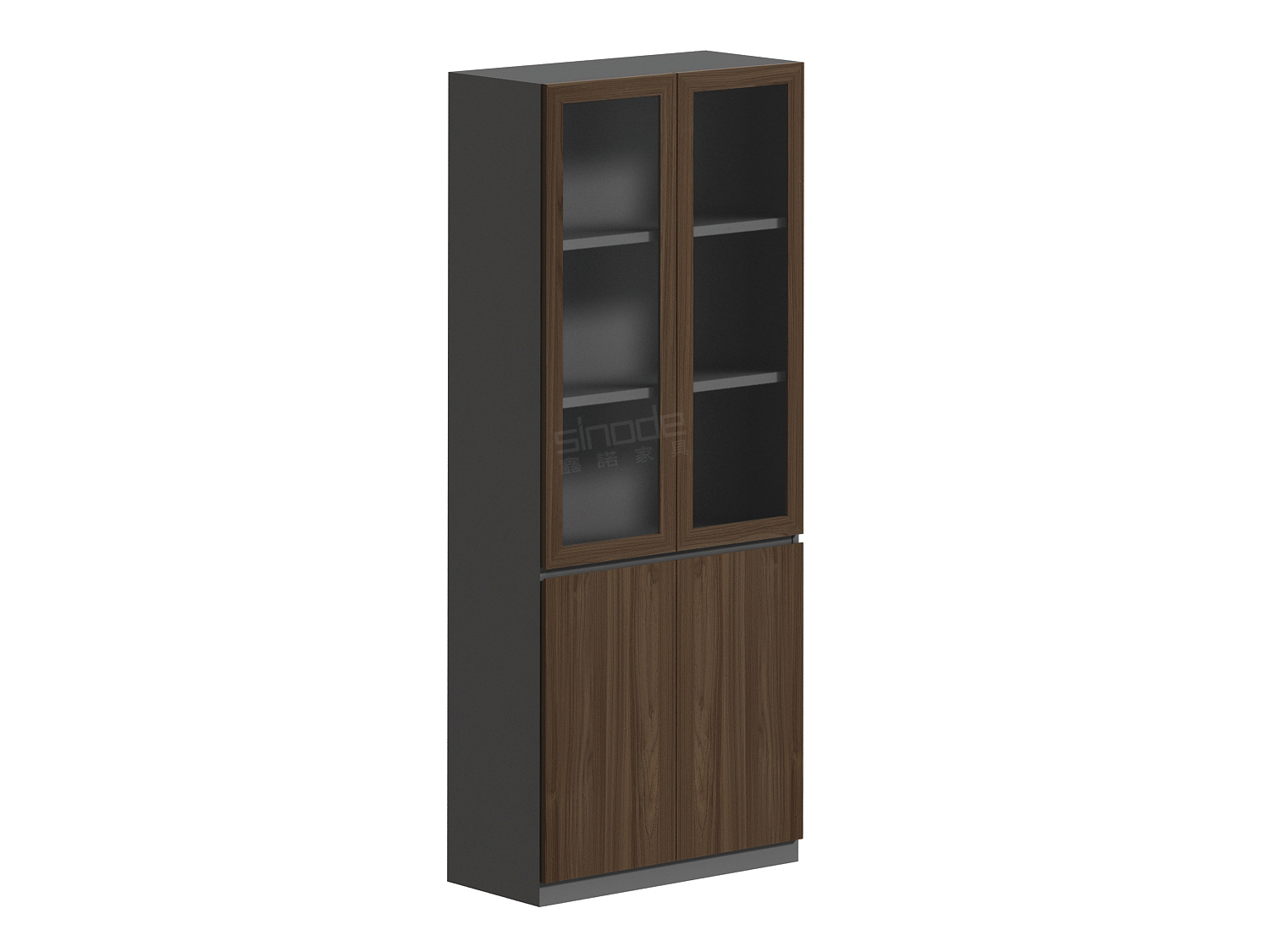 1.工艺:采用E0级刨花板贴三聚氰胺饰面; 2.封边:采用优质PVC封边; 3.配件:优质门铰+木框玻璃门+优质双门锁;