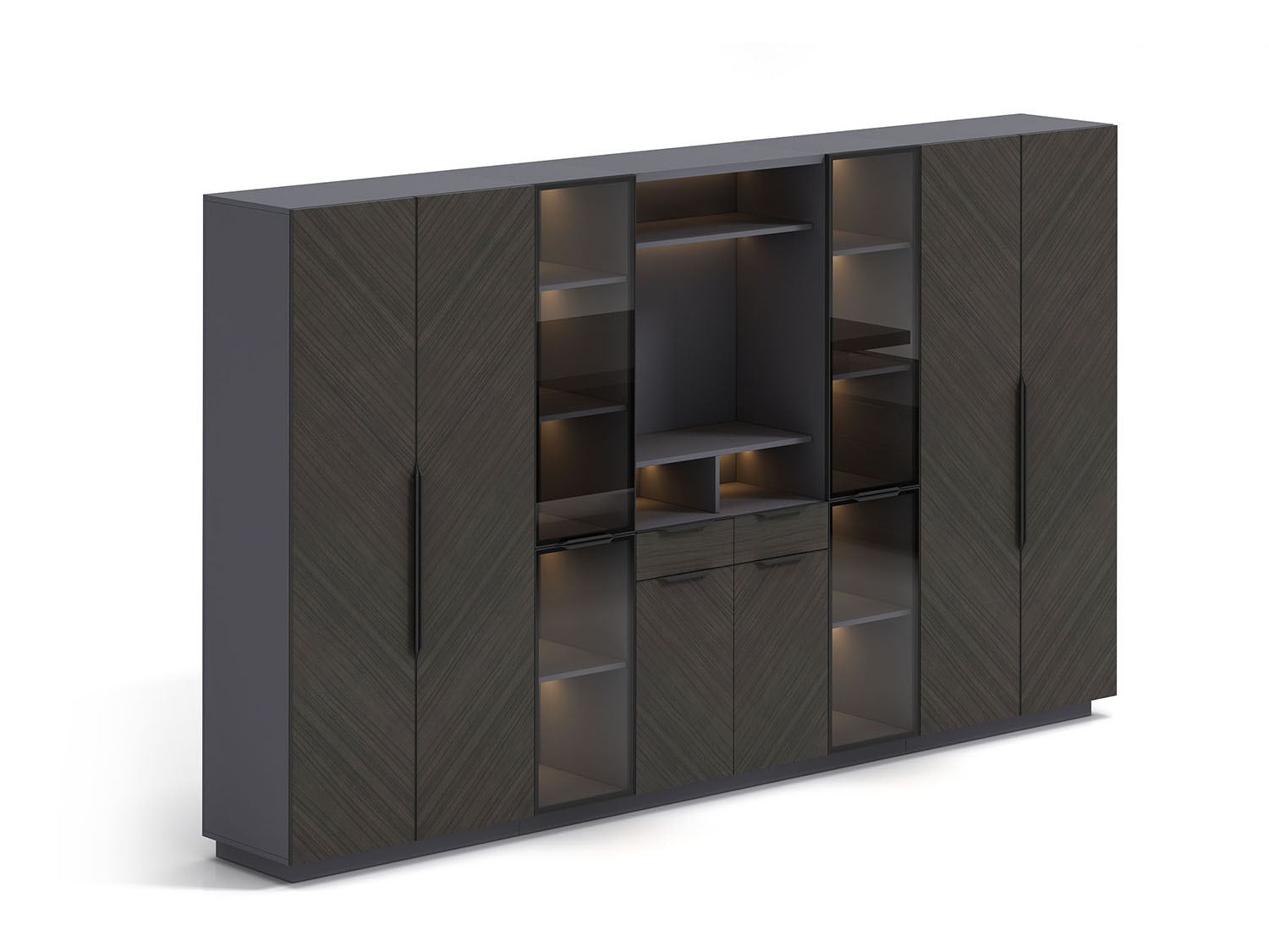 1.工艺:见光面采用E0级中密度纤维板+0.6mm天然木皮做水性漆,不见光面采用E0级刨花板贴三聚氰胺饰面; 2.封边:见光面天然木皮封边,非见光面采用优质PVC封边; 3.配件:“BMB”缓冲门铰+“BMB”缓冲三节导轨+新款通体拉手; 4..选配:可选配灯带;