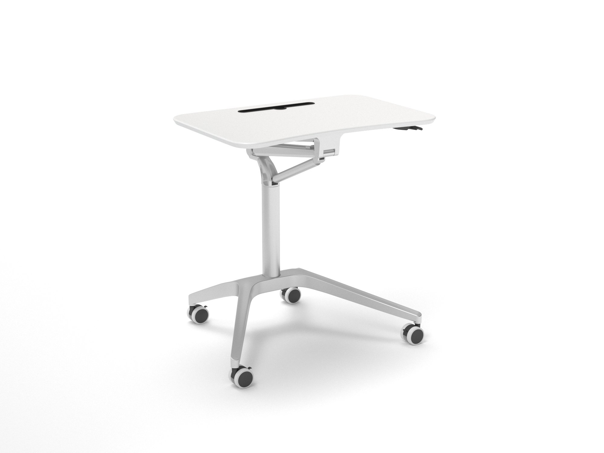 1.基材:采用E0级刨花板; 2.面材:双面高端耐磨、耐划痕、耐酸碱、耐烫、耐污染三胺饰面; 3.封边:采用优质PVC封边带,先进封边机封边工艺; 4.五金:可升降铝合金支架; 5.功能说明:支架表面铝压铸喷涂,升降高度为765-1065mm,稳固,方便; 6.配件:可锁定优质万向PU滑轮; 7.选配:可选配桌面IPAD槽