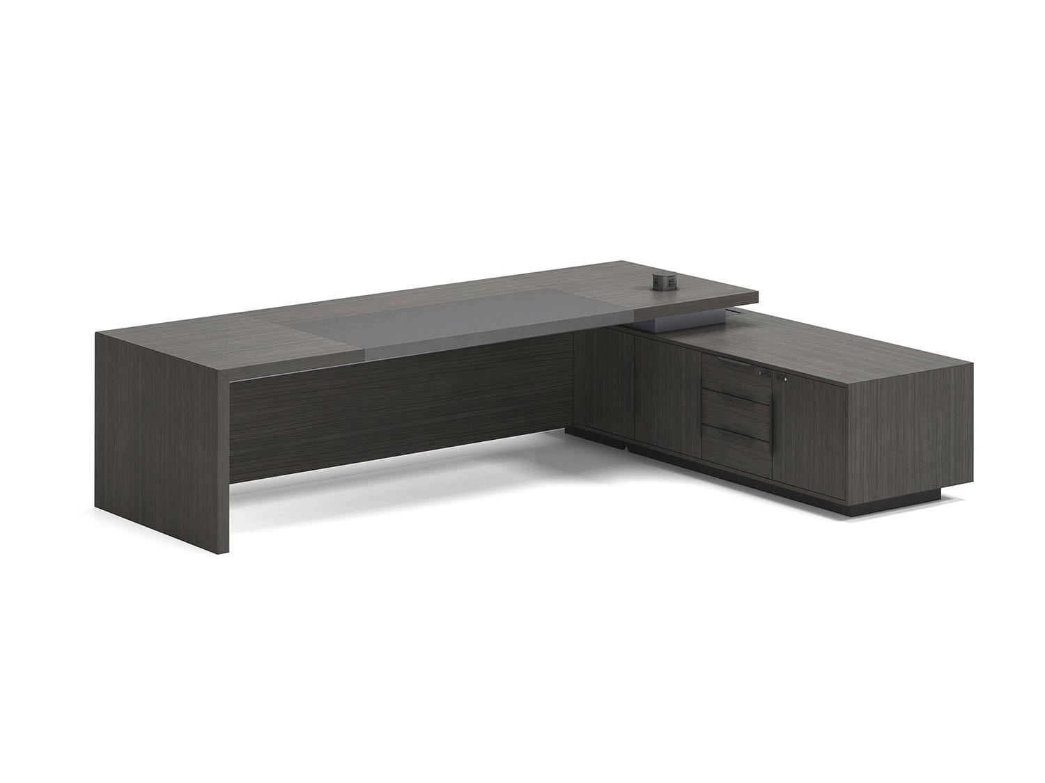 1.工艺:见光面采用E0级中密度纤维板+0.6mm天然木皮做水性漆,非见光面采用E0级刨花板贴三聚氰胺饰面; 2.封边:见光面天然木皮封边,非见光面采用优质PVC封边; 3.细节:台面、副柜做海棠角工艺,上下左右各留3MM工艺垂直倒角,台面内嵌皮垫 4.配件:“BMB”缓冲门铰+“BMB”缓冲三节导轨+机械密码锁+新款通体拉手+铝合金散热盖; 6.走线:副柜内部走线,内配Ø80圆形过线盒,配OV铝合金线盒; 7.班台分左右; 8.选配:桌面可配无线充按弹电源,