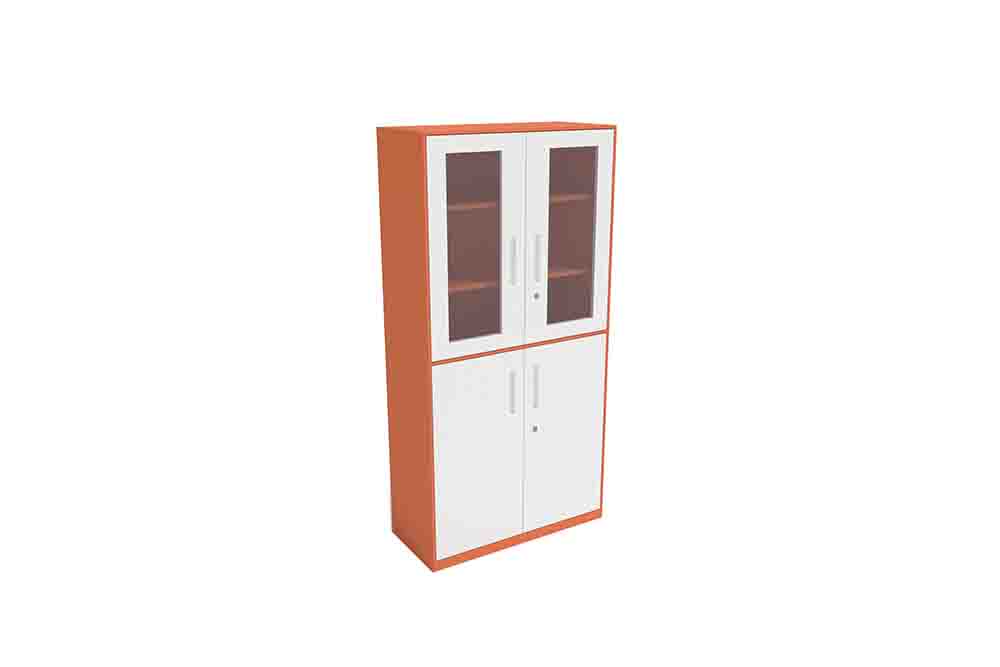 1.基材:采用0.8mm壁厚冷轧钢板+12mm窄边柜体; 2.面材:静电粉末喷涂; 3.配件:优质合页+活动钢制层板+优质柜门锁+钢制玻璃门