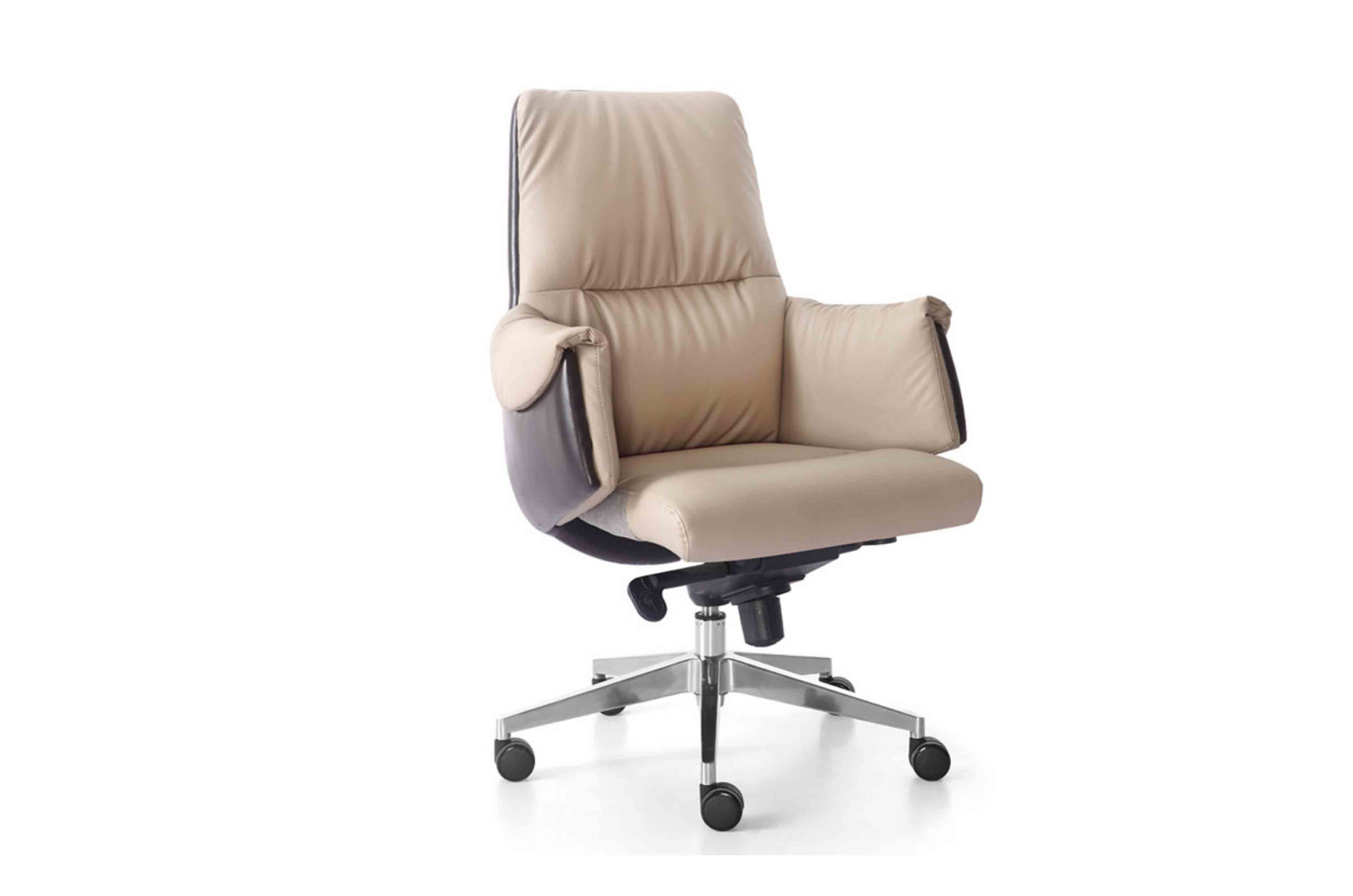1.优质西皮/巴西进口优质黄牛皮饰面 2.9层木皮压制而成的高密度夹板 3.40密度高弹力海绵 4.中班飞机底盘 5.通过SGS认证三级电镀气压棒 6.350#电镀脚配Ø60PU静音轮