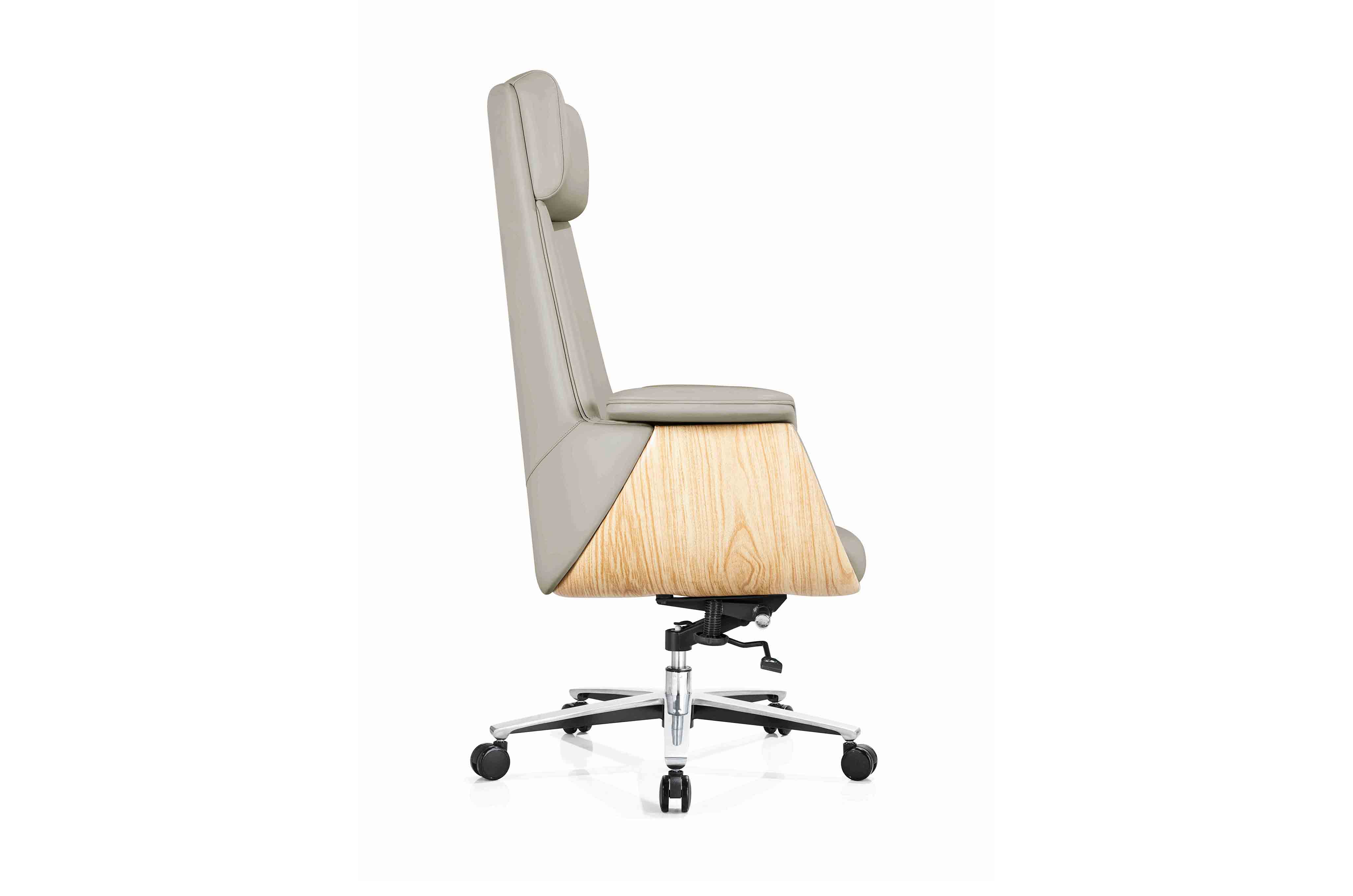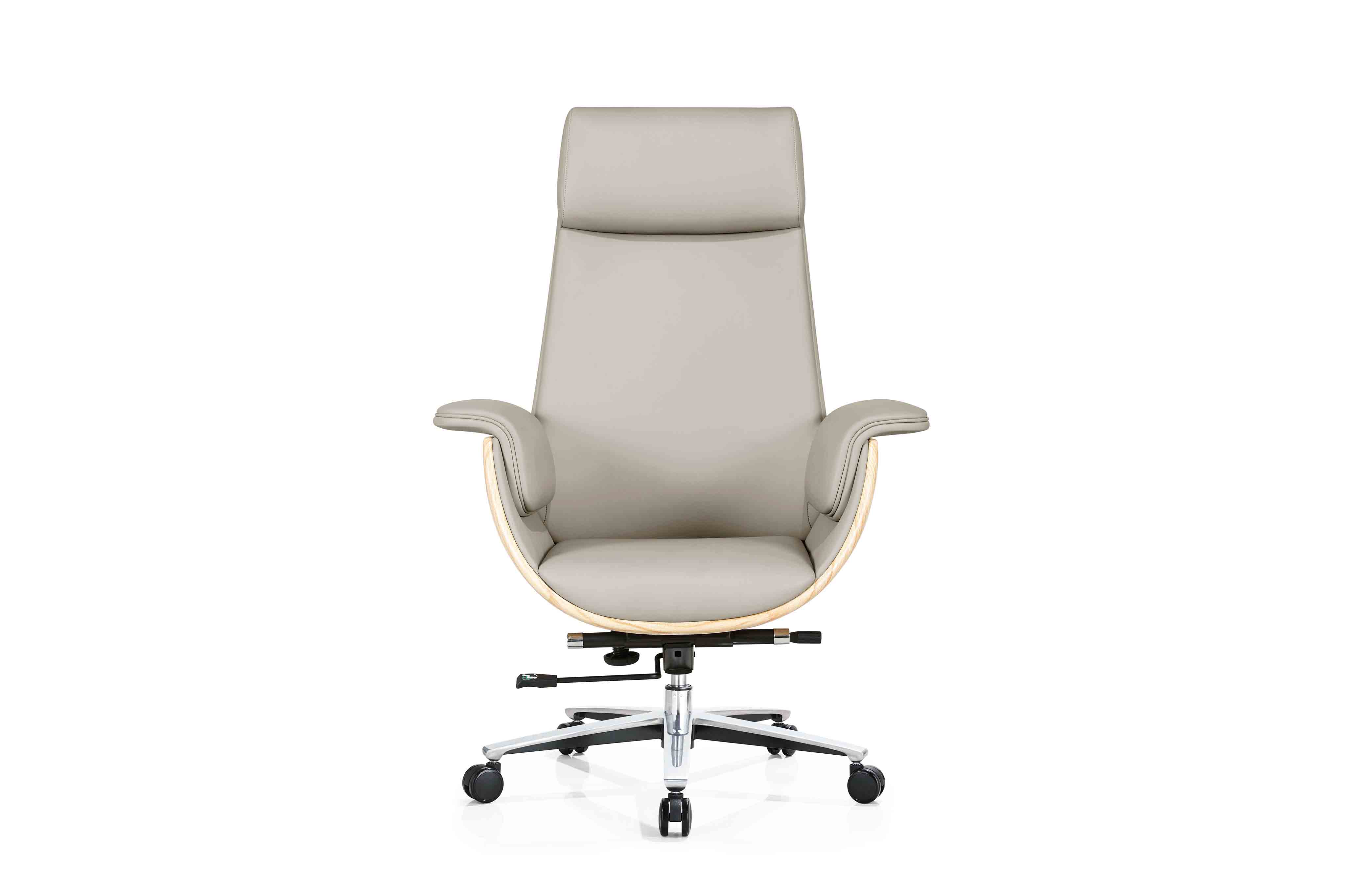 1.优质西皮/巴西进口优质黄牛皮饰面 2.9层木皮压制而成的高密度夹板 3.40密度高弹力海绵 4.中班飞机底盘 5.木纹皮扶手板面 6.通过SGS认证三级电镀气压棒 7.350#铝合金平脚配Ø60PU静音轮
