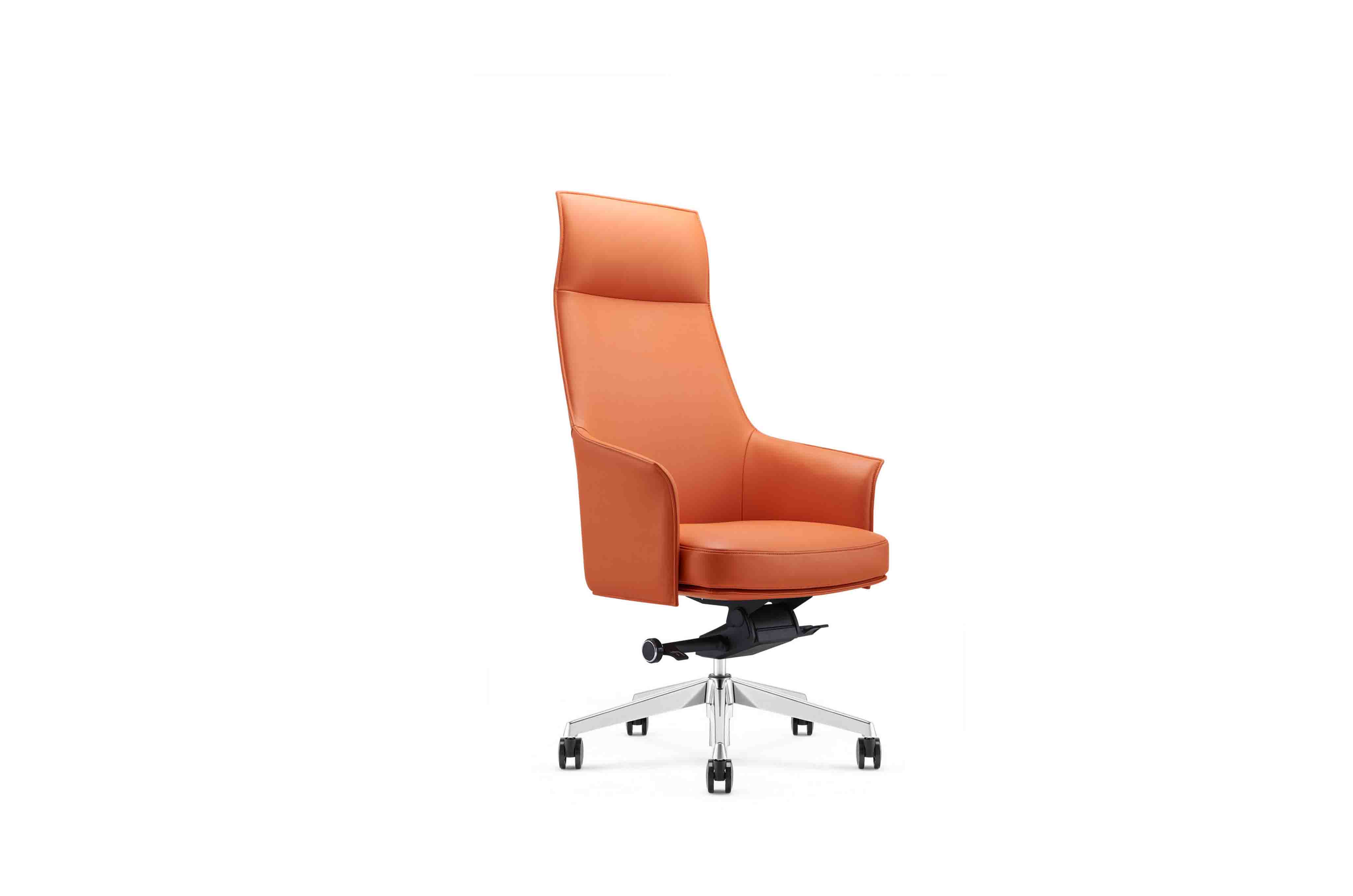 1.优质西皮/巴西进口优质黄牛皮饰面 2.9层木皮压制而成的高密度夹板 3.40密度高弹力海绵 4.中班飞机底盘 5.通过SGS认证三级电镀气压棒 6.350#电镀脚配Ø60PU静音轮