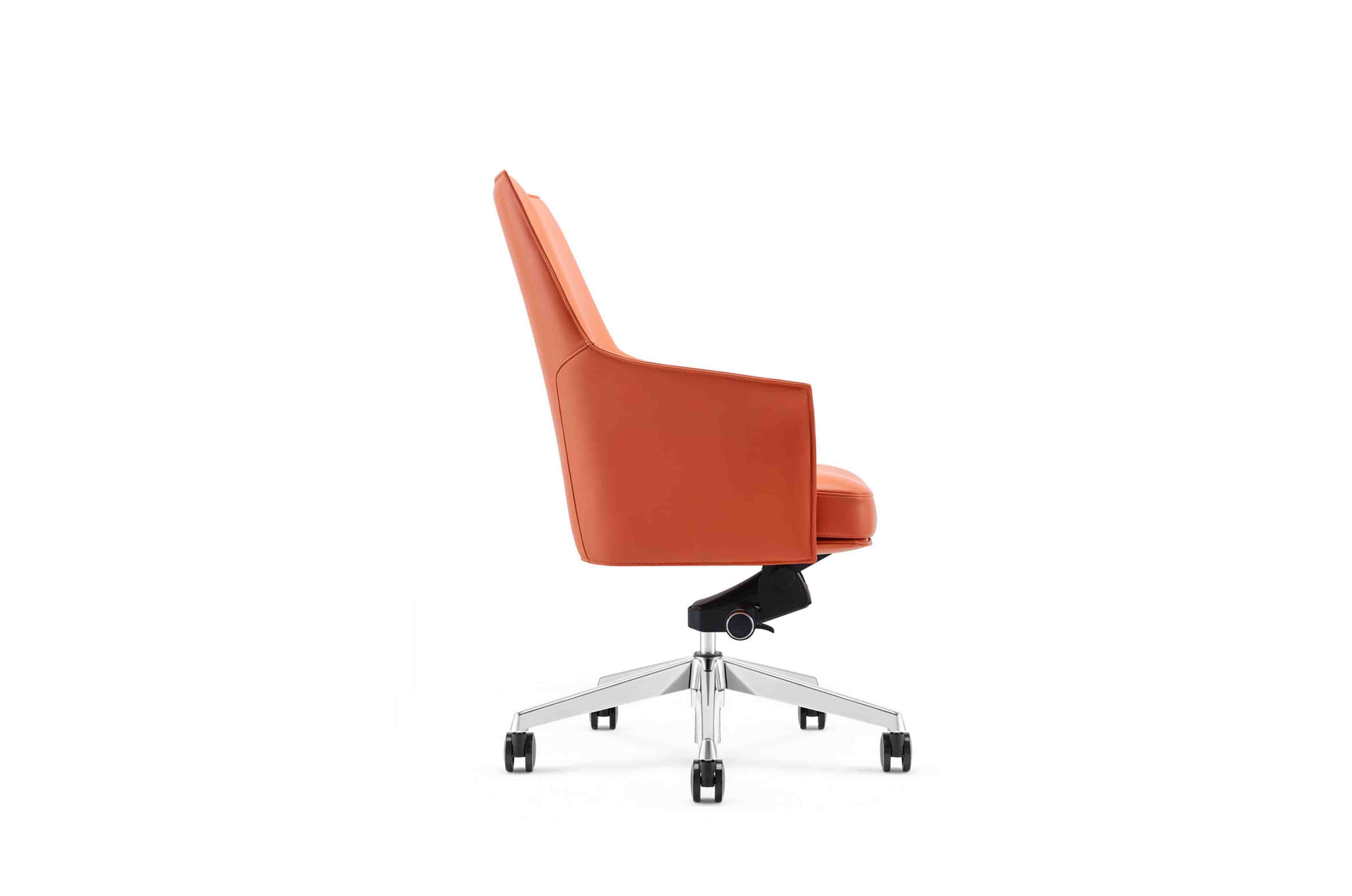 1.优质西皮/巴西进口优质黄牛皮饰面 2.9层木皮压制而成的高密度夹板 3.40密度高弹力海绵 4.中班飞机底盘 5.通过SGS认证三级电镀气压棒 6.350#电镀脚配Ø60PU静音轮