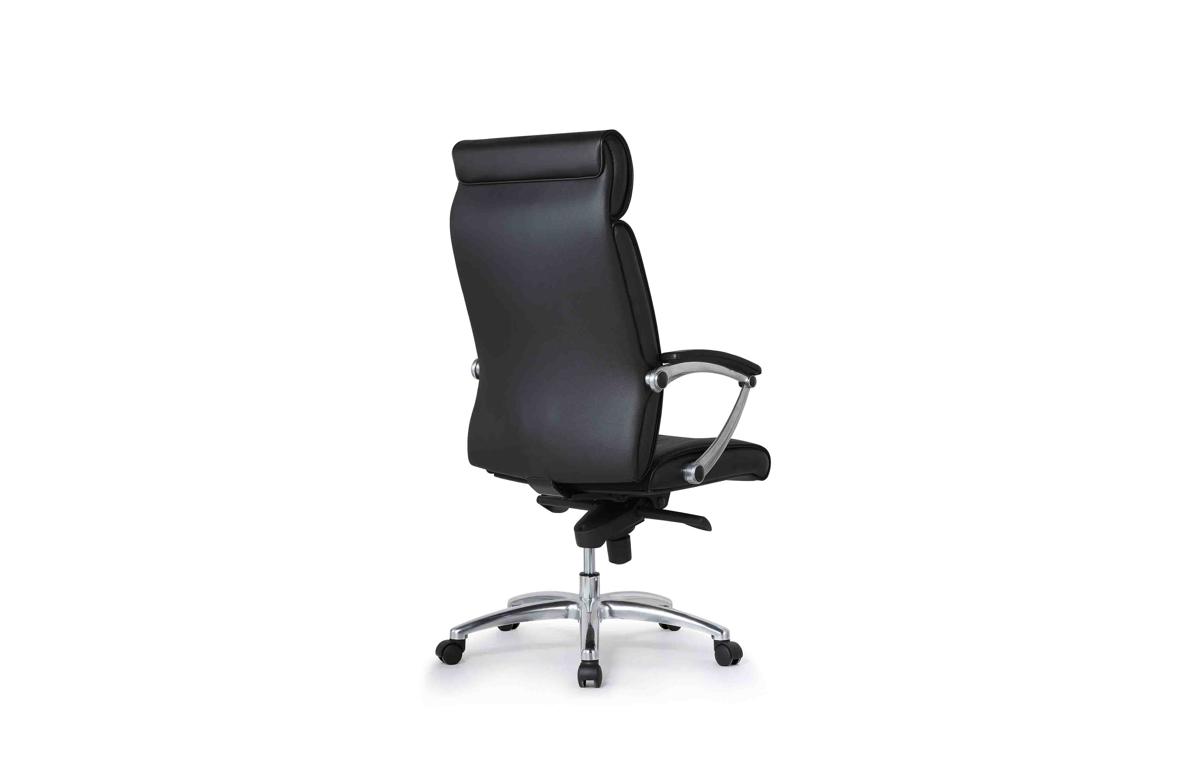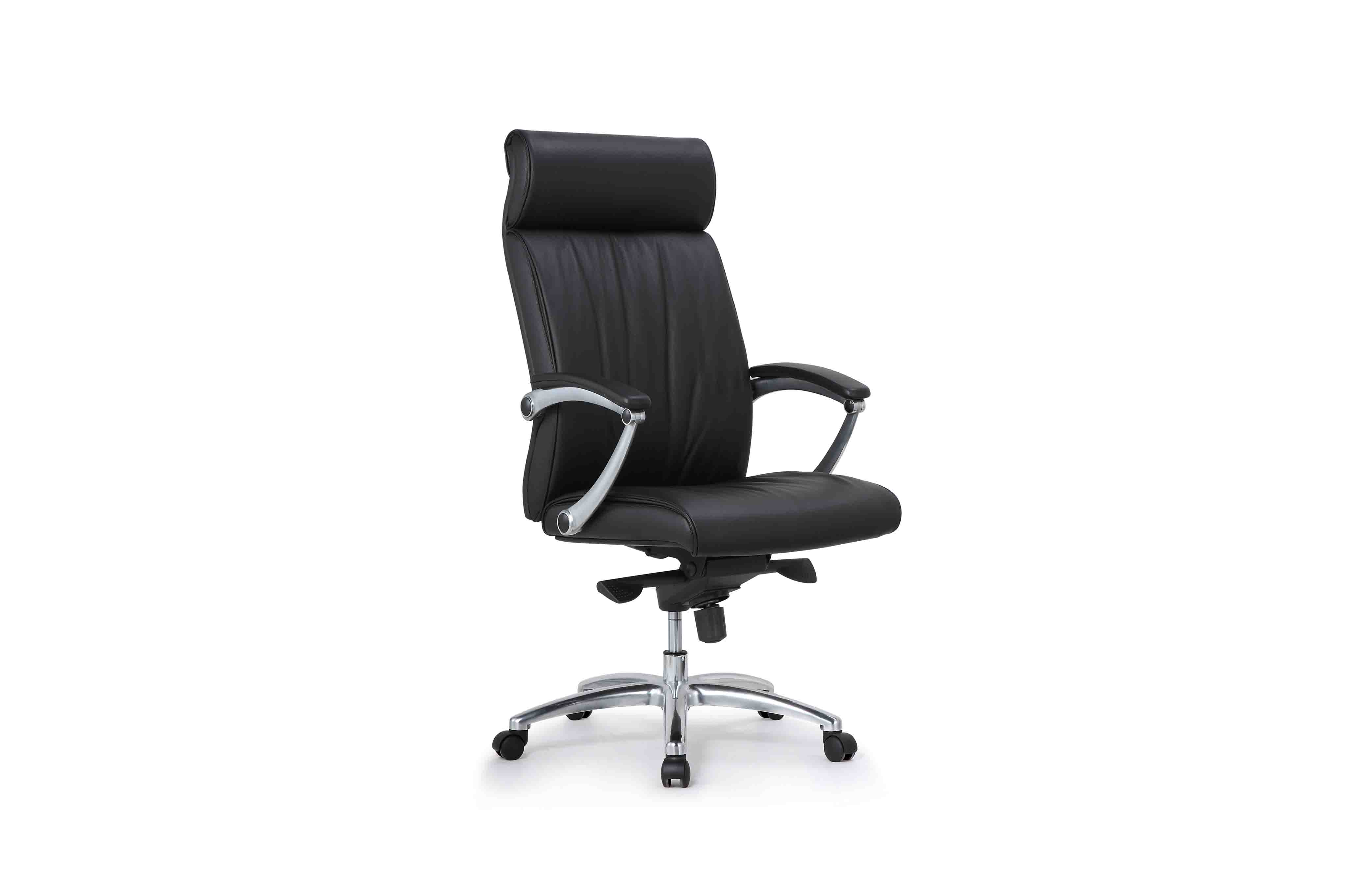 1.优质皮革饰面; 2.高背带头枕椅背一体; 3.JS-11-2铝合金扶手; 4.高密度高回弹海绵; 5.青蛙带托多功能底盘; 6.韩国品牌威亚斯4级气杆; 7.铝合金面包脚; 8.尼龙面包轮;