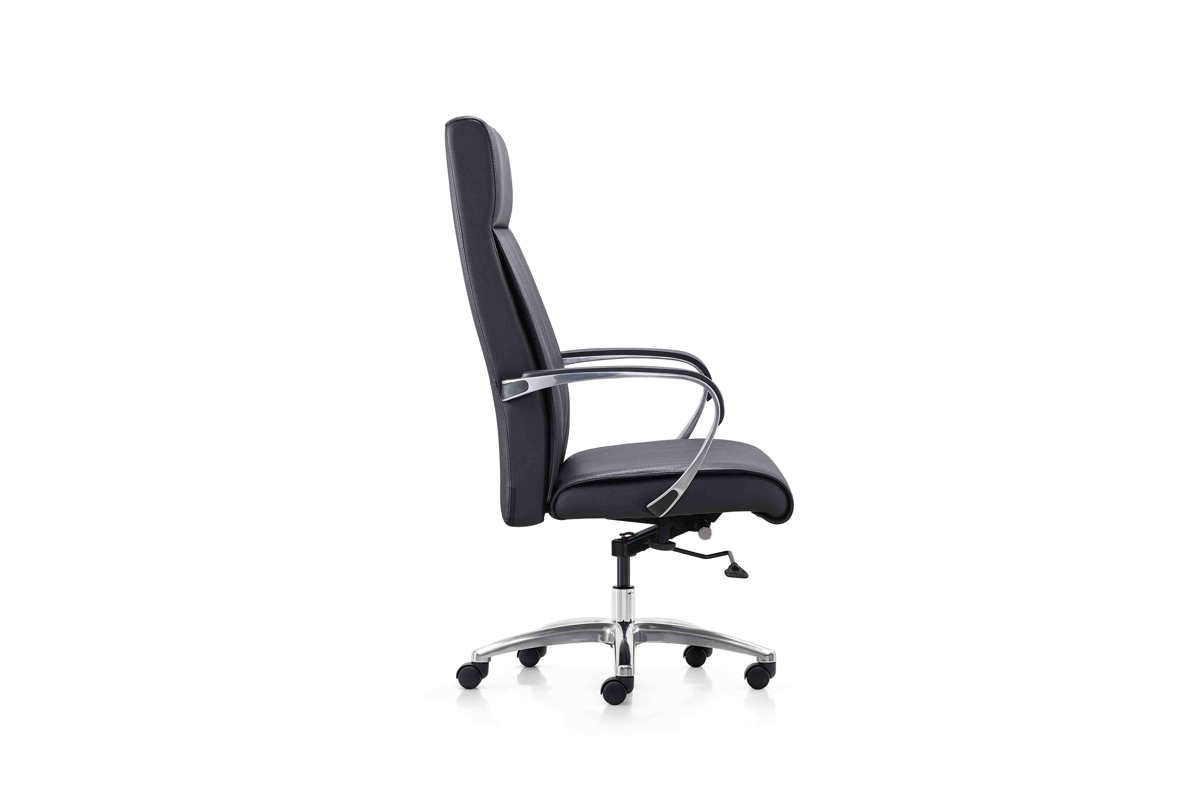 1.优质皮革饰面; 2.钢制内背架; 3.高密度高回弹海绵; 4.电镀+尼龙组合扶手; 5.升降、倾仰单手柄带拖多档锁定底盘; 6.韩国品牌威亚斯4级气杆; 7.铝合金面包脚; 8.尼龙面包轮 坐高:45cm 坐深:49cm