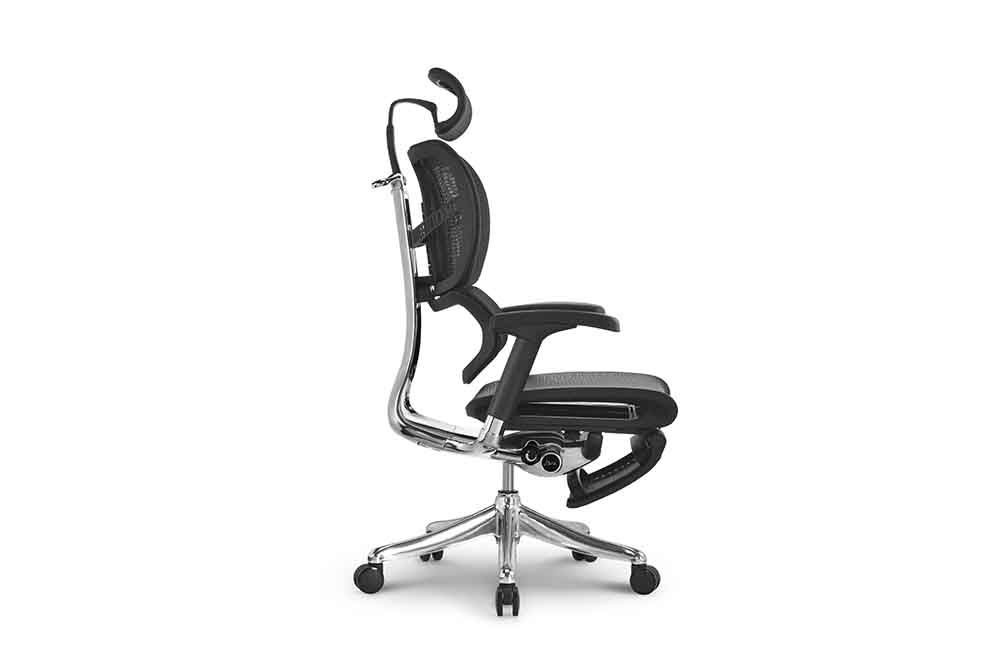 1.塑胶框架:黑色;有头枕;面料:优质进口网布; 2.底盘:自主研发铝合金线控抛光; 3.气压棒:电镀,韩国KGS/三弘品牌,100mm行程; 4.椅脚:EG铝合金抛光; 5.滑轮:65mmPU; 6.坐垫采用独家首创全网环保坐垫,配固定式舒适垫 ; 7.PU02扶手;三个把手,角度锁定;