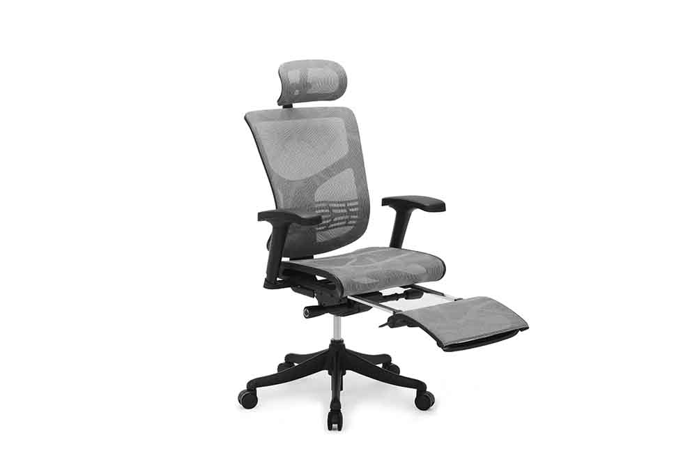 1.塑胶框架:黑色;有头枕;面料:优质进口网布: 2.底盘:多功能; 3.气压棒:烤黑漆,韩国KGS/三弘品牌;100mm行程; 4.椅脚:黑色塑胶(尼龙加纤); 5.滑轮:60mmPU; 6.坐垫采用独家首创全网环保坐垫,配固定式舒适垫;7.PU02扶手;加腰靠;