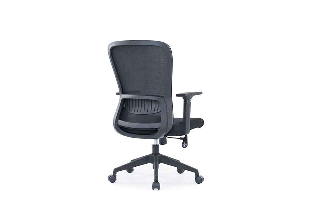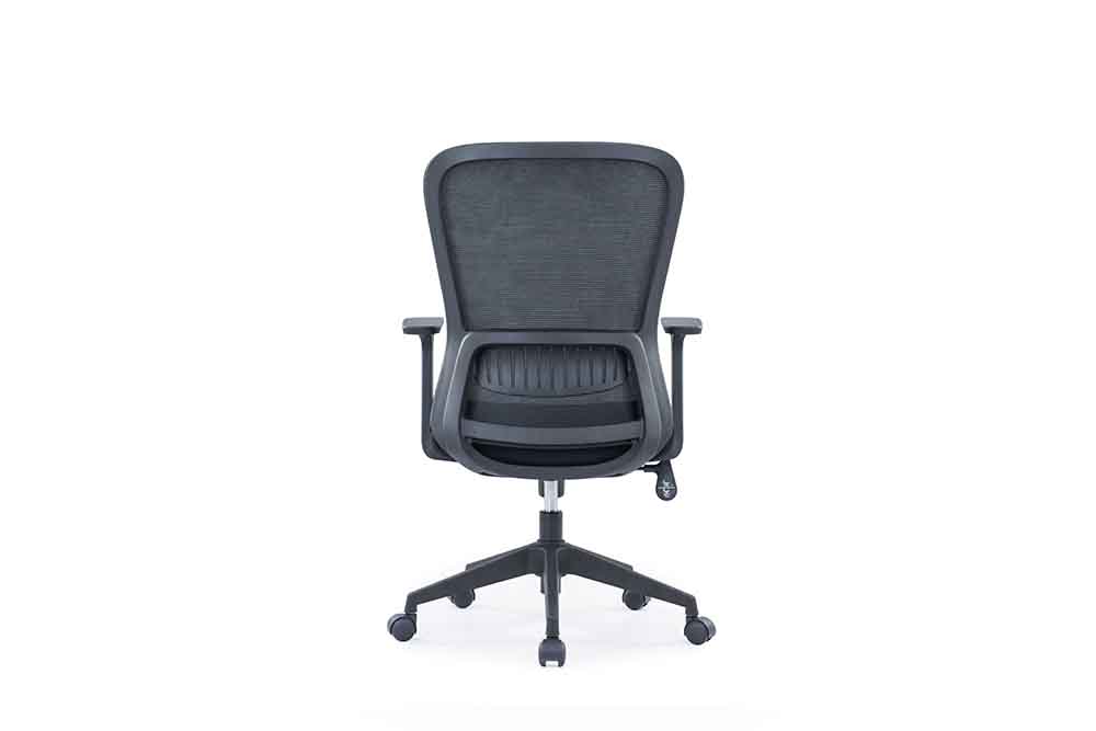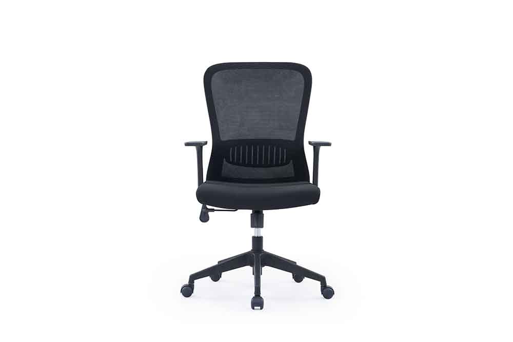 1.黑色PP固定扶手 2.黑色PP加玻纤背架升降腰靠 3.座包采用40#高弹力海绵 4.配中班蝴蝶底盘,带原位锁定功能 5.100沉口7CM黑色气杆 6.320mm黑色尼龙五星脚 7.Ø50mm黑色耐磨尼龙轮