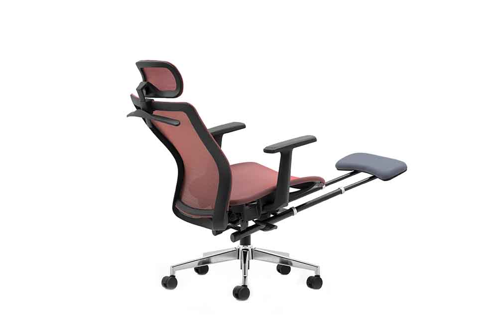1.大头枕可升降和旋转调节 2.头枕、背和座采用韩国进口特级网 3.WS-02固定PP扶手 4.分体倾仰三段锁定底盘 5.可调节长度脚踏,配软包垫 6.100mm行程黑色四级气杆 7.350mm高级电镀脚 8.60mm防震PU轮