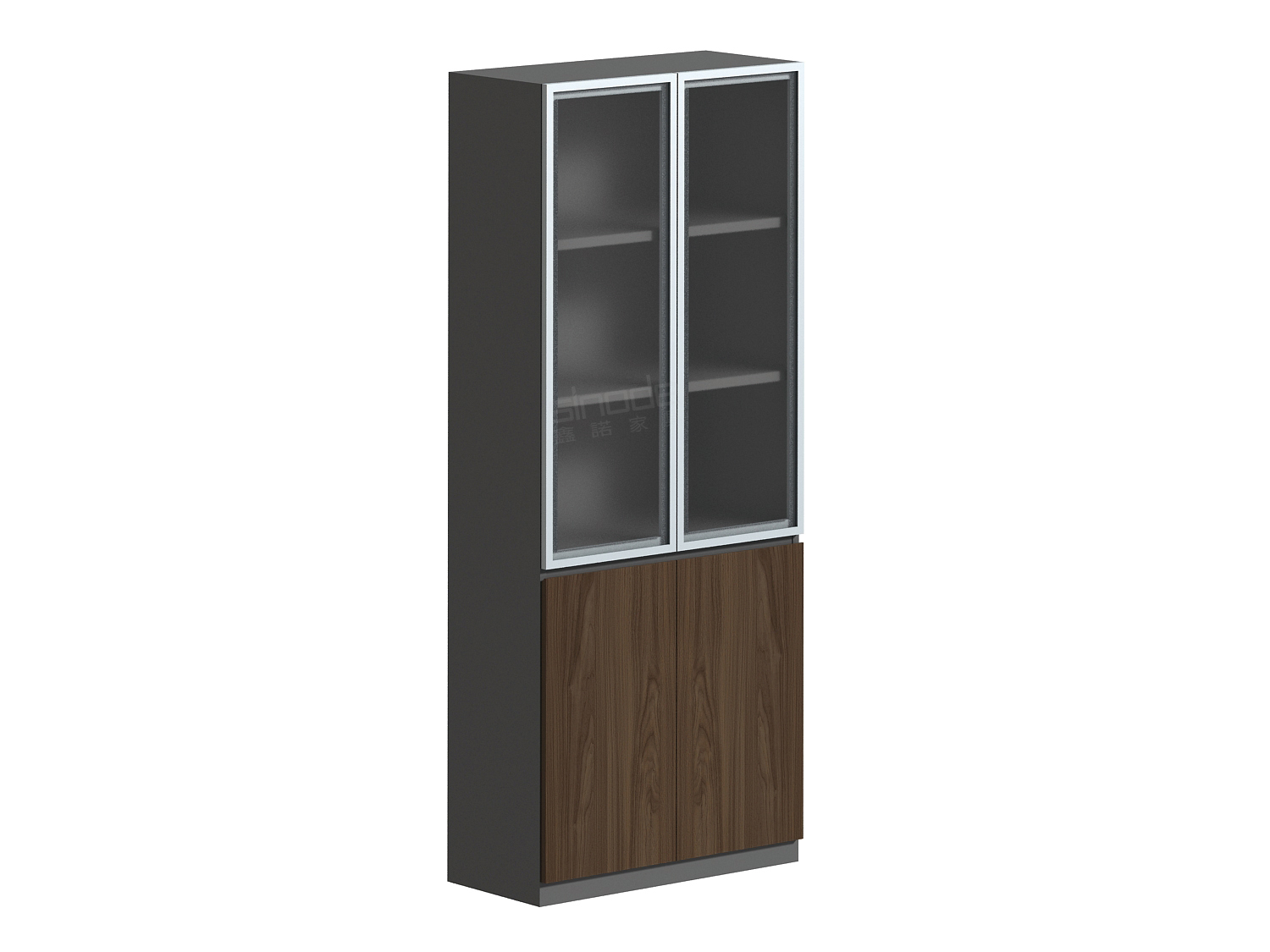 1.工艺:木纹色采用E0级中密度纤维板+0.6mm天然木皮做水性漆,实色采用E0级刨花板贴三聚氰胺饰面; 2.封边:木纹色天然木皮封边,实色采用优质PVC封边; 3.配件:优质门铰+铝框清璃门+优质双门锁;