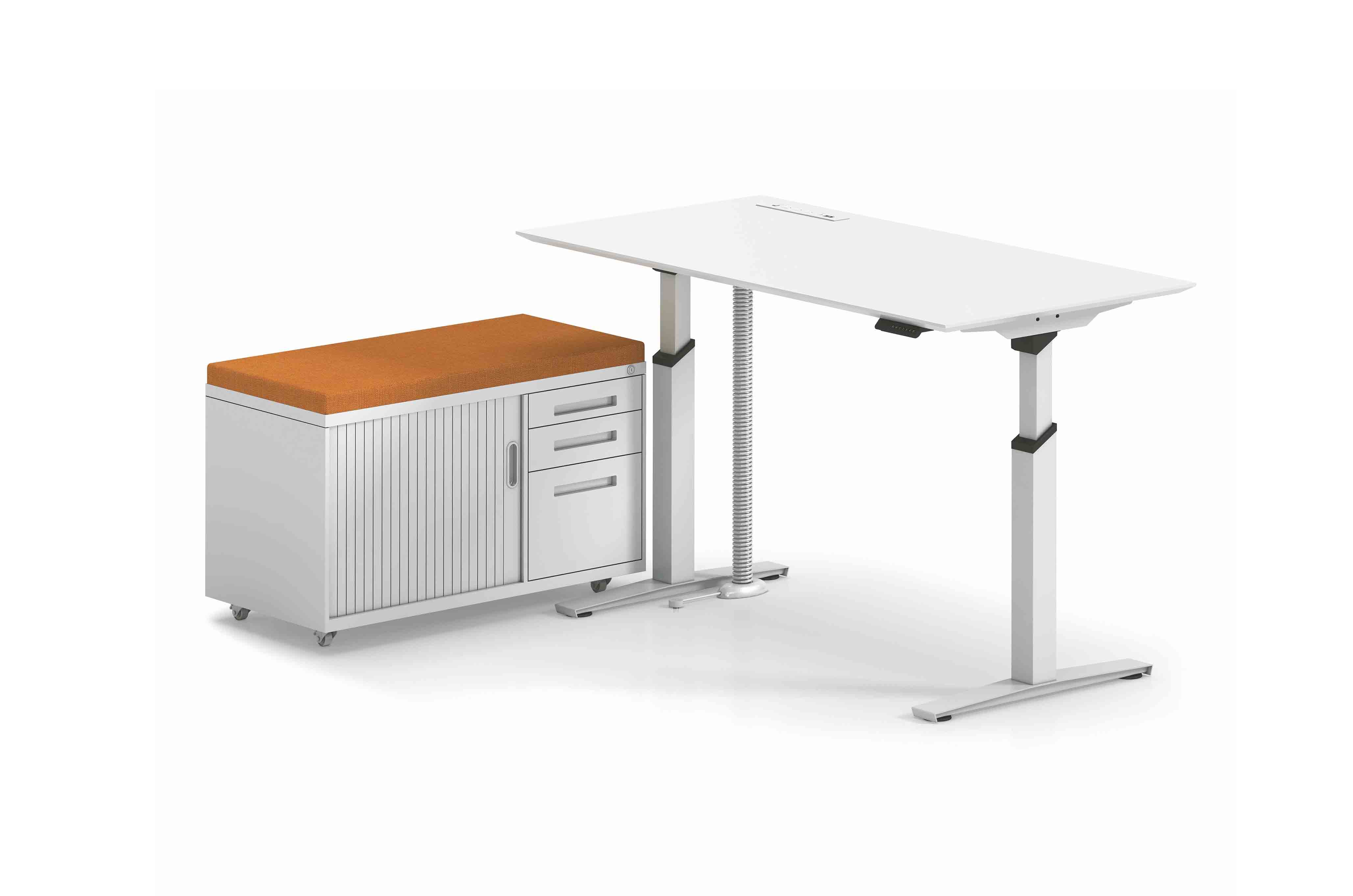 1.工艺:采用E0级刨花板贴三聚氰胺饰面 2.封边:采用优质PVC封边 3.五金:双电机升降桌脚,四档高度记忆,遇阻回退功能,配三通弹簧线; 4.台面配大白双面六插电源; 5.选配:可选配钢制活动柜、木制活动柜、主机架、蛇形管等;